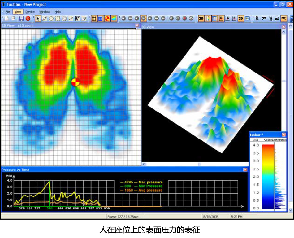 传感单元受到压力作用时,就接通了电子回路,设备通过计算电阻阻值的变化而得出每个传感单元的压力值。软件可同时显示每个传感单元的压力,并以二维和三维的图形方式直观显示压力变化,软件可显示每个传感单元的实时压力。