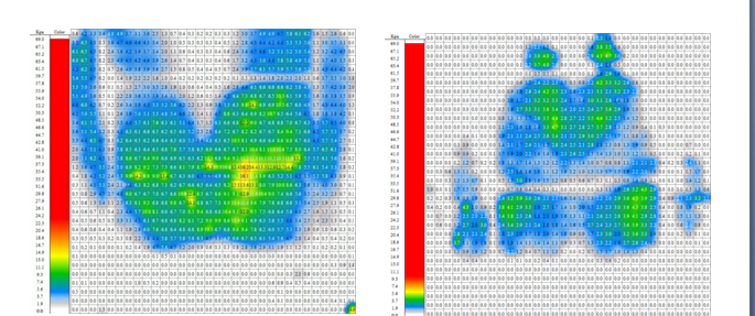 (3)直观显示传感器各个传感单元的二维和三维图形,以蓝绿黄红等基色显示最小值至最大值图形;