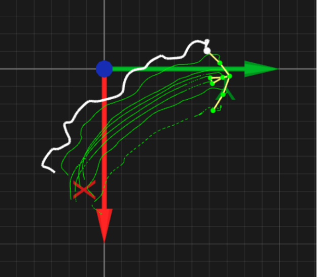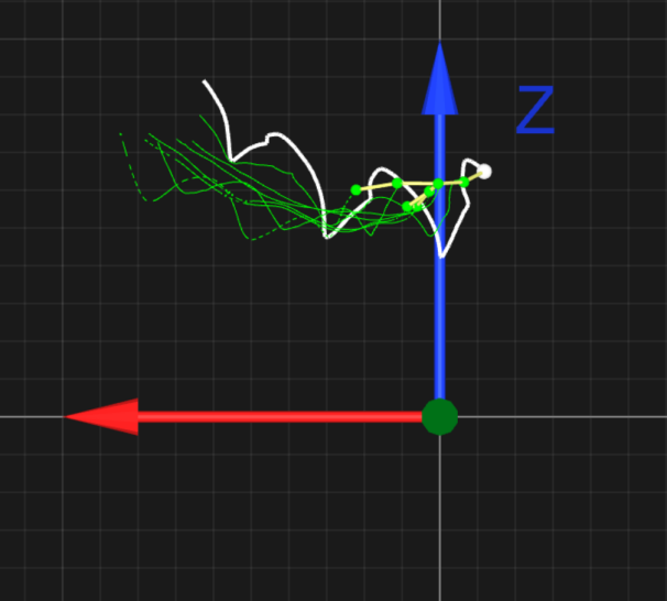 According to the coordinate points of the experimental object collected by the motion capture system in space, the motion trajectories of the marked points in the XOY plane and the XOZ plane are recorded, and the motion trajectories of each part in the multi-period flapping wing movement of the experimental object are described. The following figure is the flight trajectory diagram of the experimental object in the XOY plane and the XOZ plane. The movement of the experimental object mainly investigates the change law of each part during its flight. It can be seen that the wing tip and carpal bone have obvious displacement changes in the X direction, Y direction and Z direction with the movement of the wing, and they change periodically. The movement changes of the skull, the root of the leading edge and the root of the trailing edge are very small.