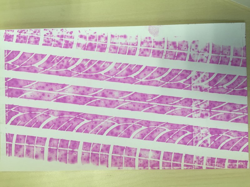 显微镜下,附着于供体底物 (donor substrate) 的色素颗粒被表面经化学处理的接收板 (receiver sheet) 吸附。接收板和供体涂层(donor coating) 形成共价键,并由 Van der Waals 方程描述。供板 (donor sheet) 和接收板之间的化学兼容性,使得两个板之间能够进行分子扩散,从而形成色素供板 (pigment donor) 到接收涂层之间的渗透网络。当我们试图分开供体板和接收板时,它们之间的微剪切力使得微粒离开有颜色的供体底物,从而留下痕迹。
