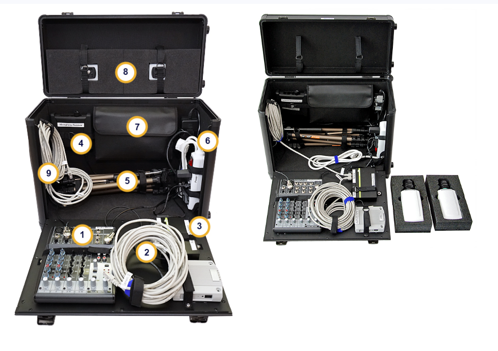 所有必要的音频和视频组件都装在一个滚轴公文包里,可以很容易地运到测试地点。