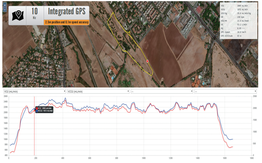 ■ Data can be monitored real time on K5 display and, eventually, downloaded (together with K5 metabolic parameters) in a dedicated interactive browser or in mapping software such as Google Earth.