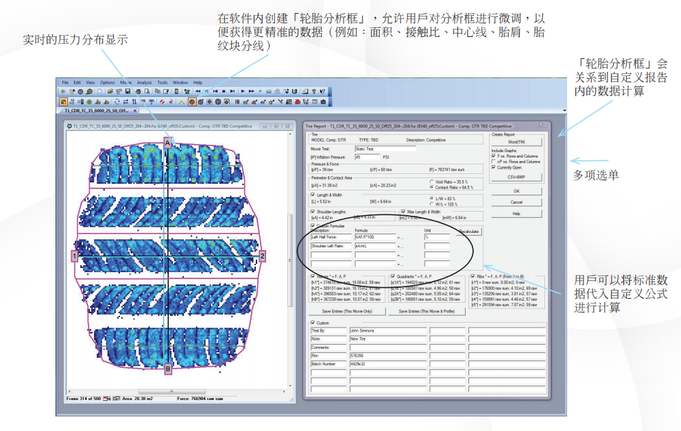 软件特色 TireScan提供更**与**的分析,该软件内以多种格式显示压力分布数据。