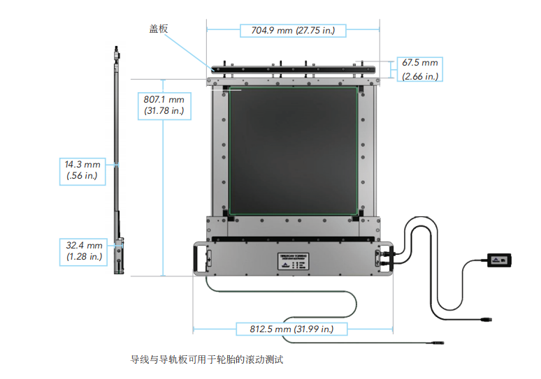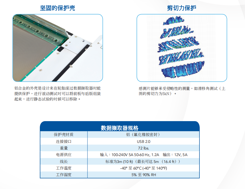 ireScan系统内含坚固的金属数据扫瞄撷取器,能在恶劣的环境下进行测试,感测片安装平板和 导轨板能让轮胎平滑的在感测片上前后驱动。