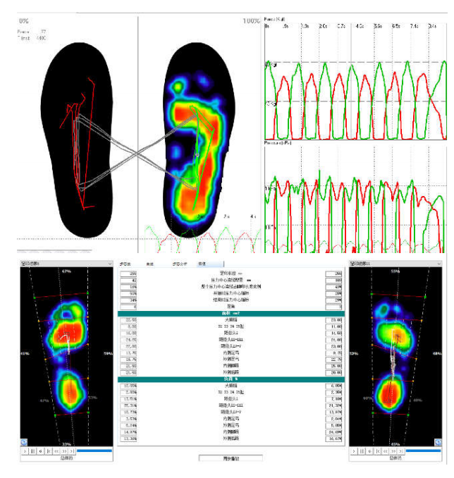 通过放置在鞋内的压力鞋垫,可获得在真实环境下鞋内的足底压力分布特点, 便捷的操作程序和友好的软件界面为使用者提供了极大的方便。系统软件可获取压力分布图像、足底各部位受力数据、压力中心的轨迹等信息,并可进行文本输出, 便于统计和分析。