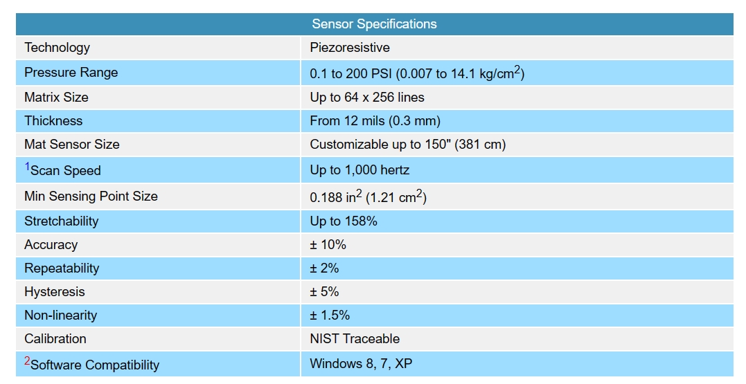 Tactilus® now has all the electronics safely encapsulated on the sensor element itself. The Tactilus® sensor consists of a series of interlaced lines that create a matrix with as many as 16,384 unique sensing points. Tactilus® Windows® based software communicates with the sensor up to a theoretical 1,000 frames per second - fast enough for impact force measurement. For users desiring direct interfacing with their own control software Sensor Products can supply an API.