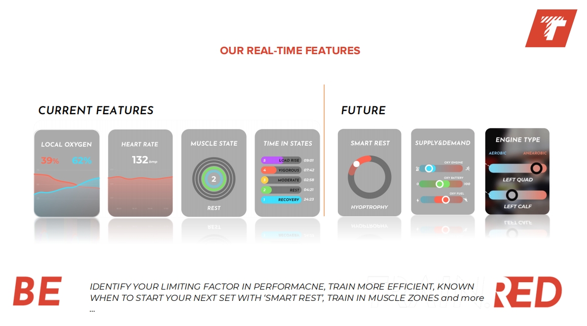 Train.Red tracks your muscles in real-time. We translate oxygen data from your muscles to features that guide any sports enthusiast to improve strength and endurance performance. We are a spin-off from Artinis Medical Systems B.V., the world leader in scientific, wearable (f)NIRS equipment, over 1500 publications, and creator of the current golden standard.