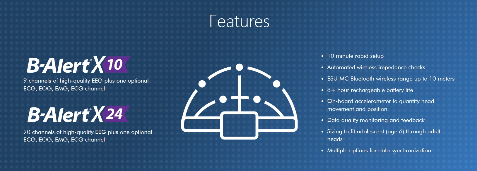 Advanced Brain Monitoring’s wireless B-Alert systems expands the horizon for operational neuroscience applications and cognitive state/human factors assessments. The simplicity, ease of use, comfort and wearability of its systems allow high quality data to be acquired in real or virtual environments by personnel with limited technical training.