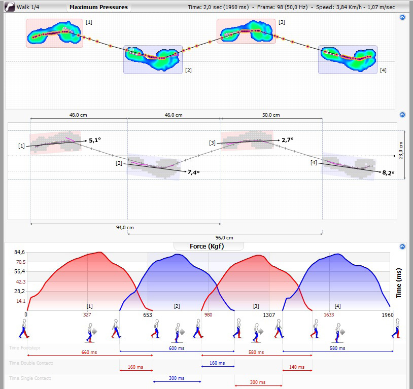 (5)可分析步长、步频、步间距、足长、摇摆时间等步态参数