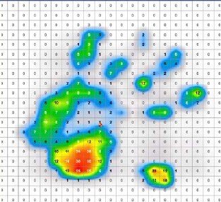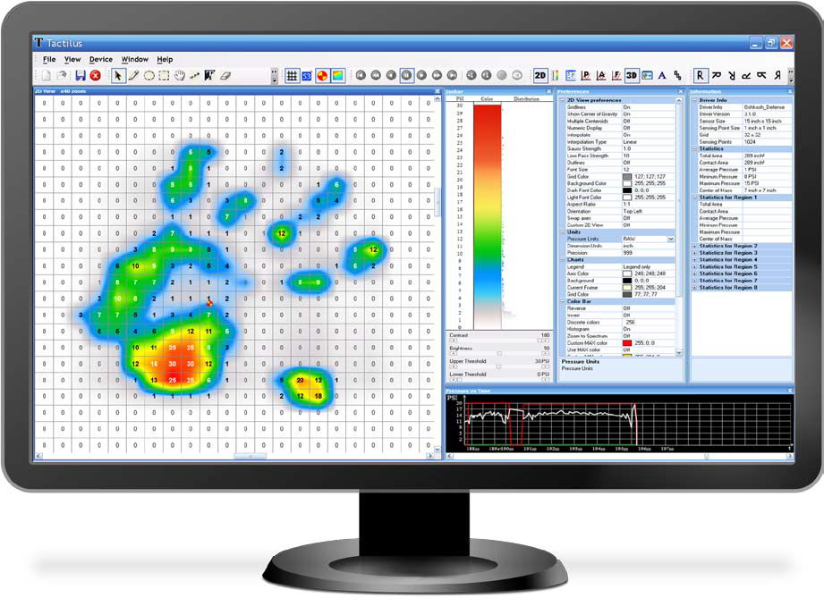 (3)直观显示传感器各个感测单元的二维和三维图形,以蓝绿黄红等基色显示最小值至**值图形;