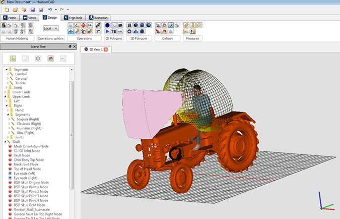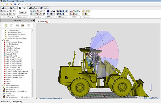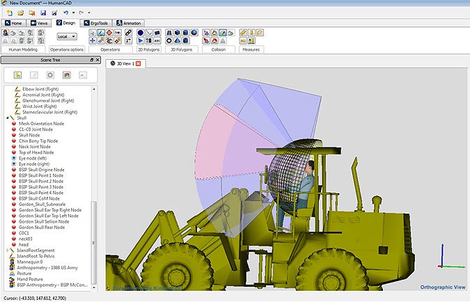 HumanCAD人体运动仿真软件可以协助设计各种运输工具。 您可以轻松创建各种人体测量学的人体模型,以测试您的设计的覆盖范围,视野等。