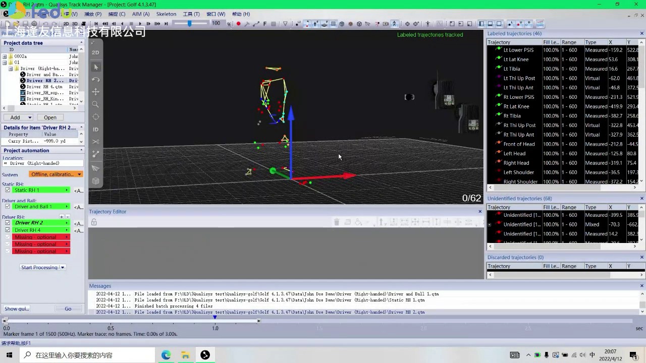 Qualisys三维运动捕捉系统功能概述-以高尔夫球为例