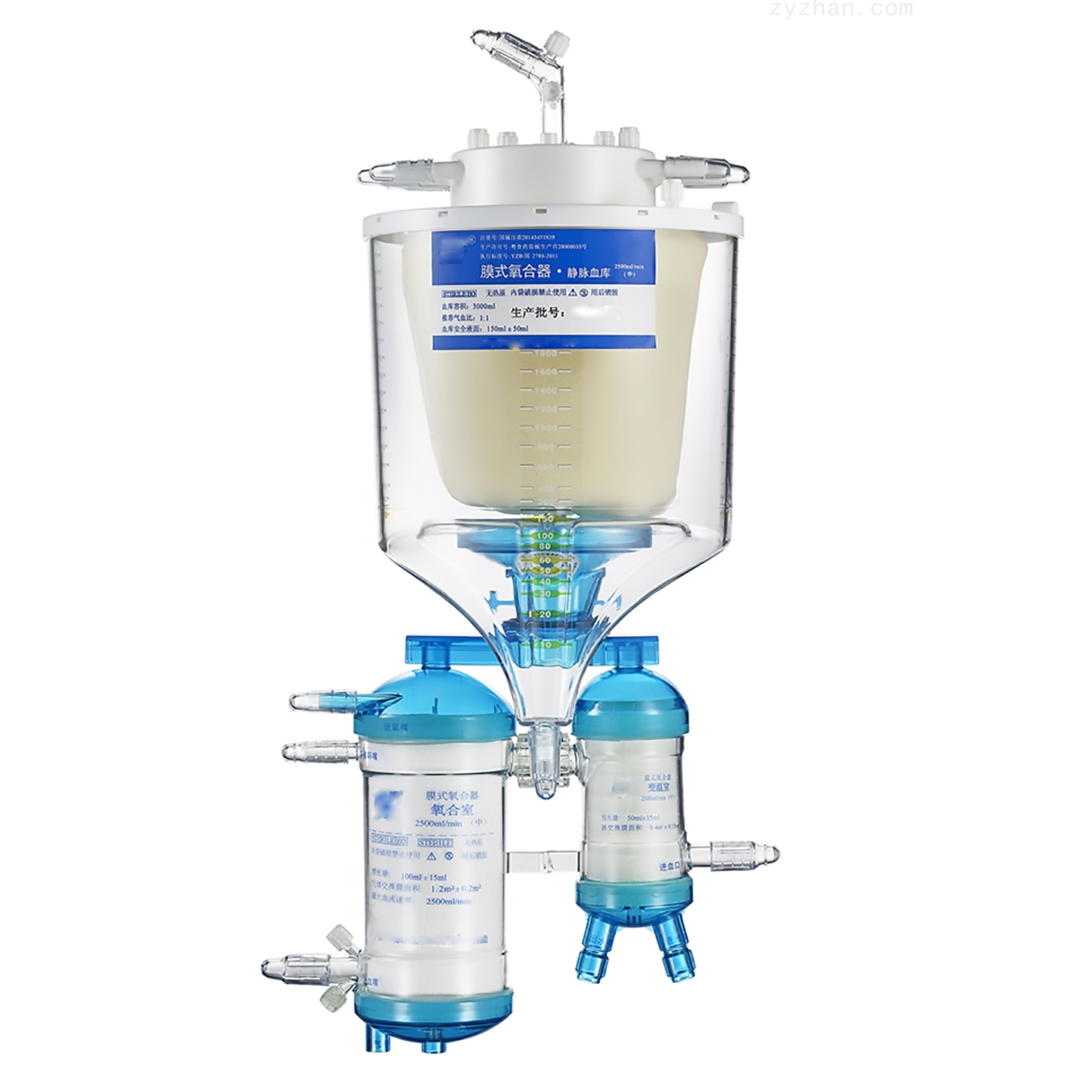 膜式氧合器又称膜式人工肺,是一种能进行血气交换的一次性使用人工装置。它根据肺泡气体交换的原理,集氧合、变温、储血和过滤等功能于一体,用于替代肺脏功能进行血液氧合并排除二氧化碳,以满足术中患者的需要。其特点是气血不直接接触,仿生性较好。