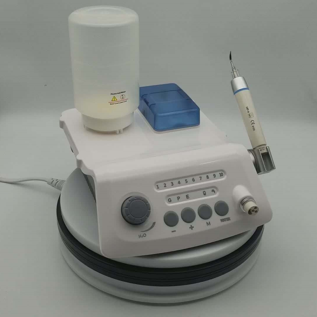 超声洁牙机是在超声波洁牙过程中所用到的洁牙机器,通过超声波推动洁牙器,将震动着的洁牙器工作头伸入口腔,松动菌斑、牙垢和细小的牙石和牙齿的粘合,打碎牙齿表面的污物,同时不断用水冲洗,去除牙齿表面的牙结石,完成洗牙。此产品利用机械作用、温热作用、化学作用达到洁齿、美齿、的效果,同时可以促进血液循环,抑制牙齿炎症和牙龈出血,防止牙龈出血,是常用的一种洗牙机器。