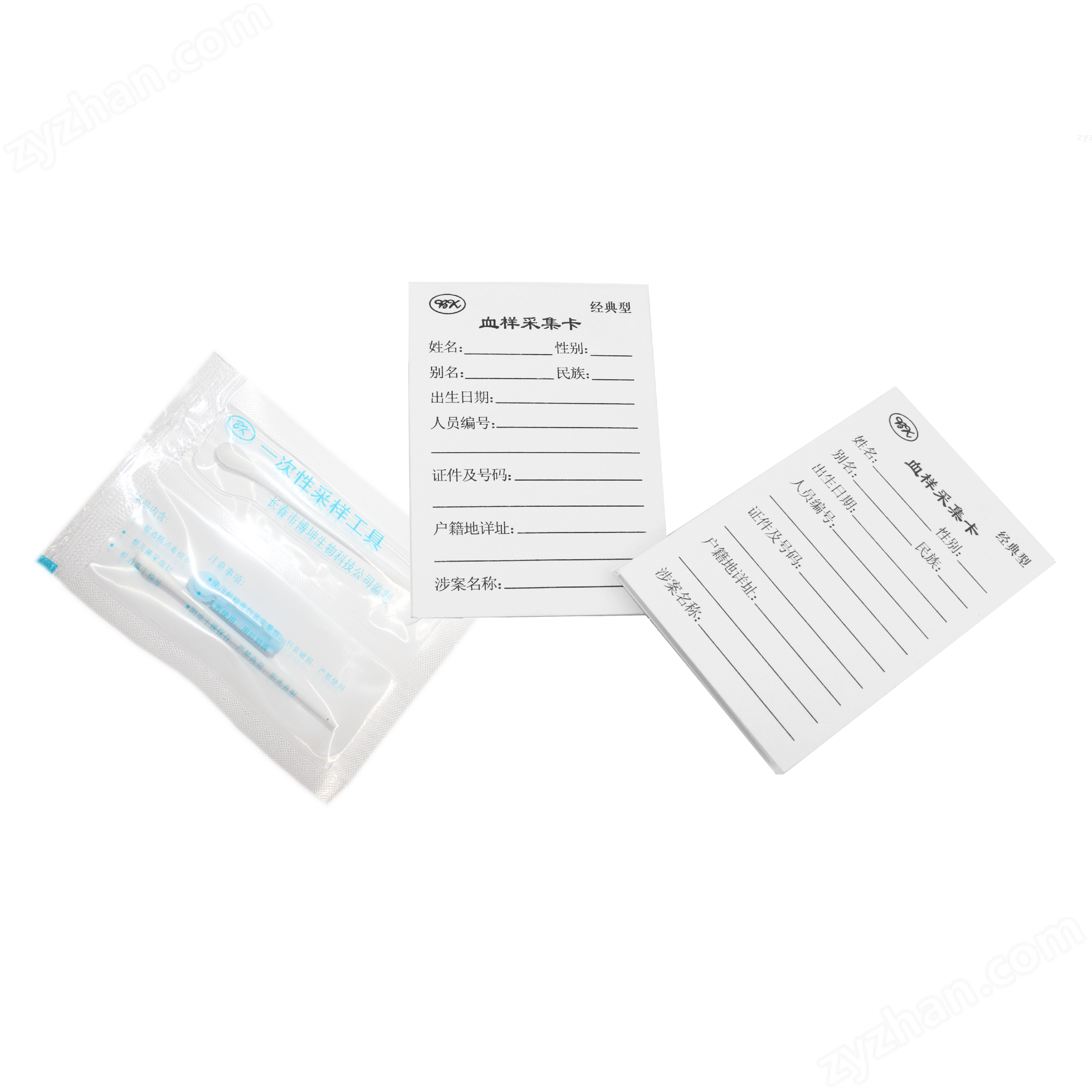 产品特点:使用方便快捷,血样提取更规范,保证血样保存、送检的质量和成功率,采集卡经过特殊处理和消毒灭菌,避免外源污染、避免纱布提取、脱脂棉提取导致的血样DNA降解。