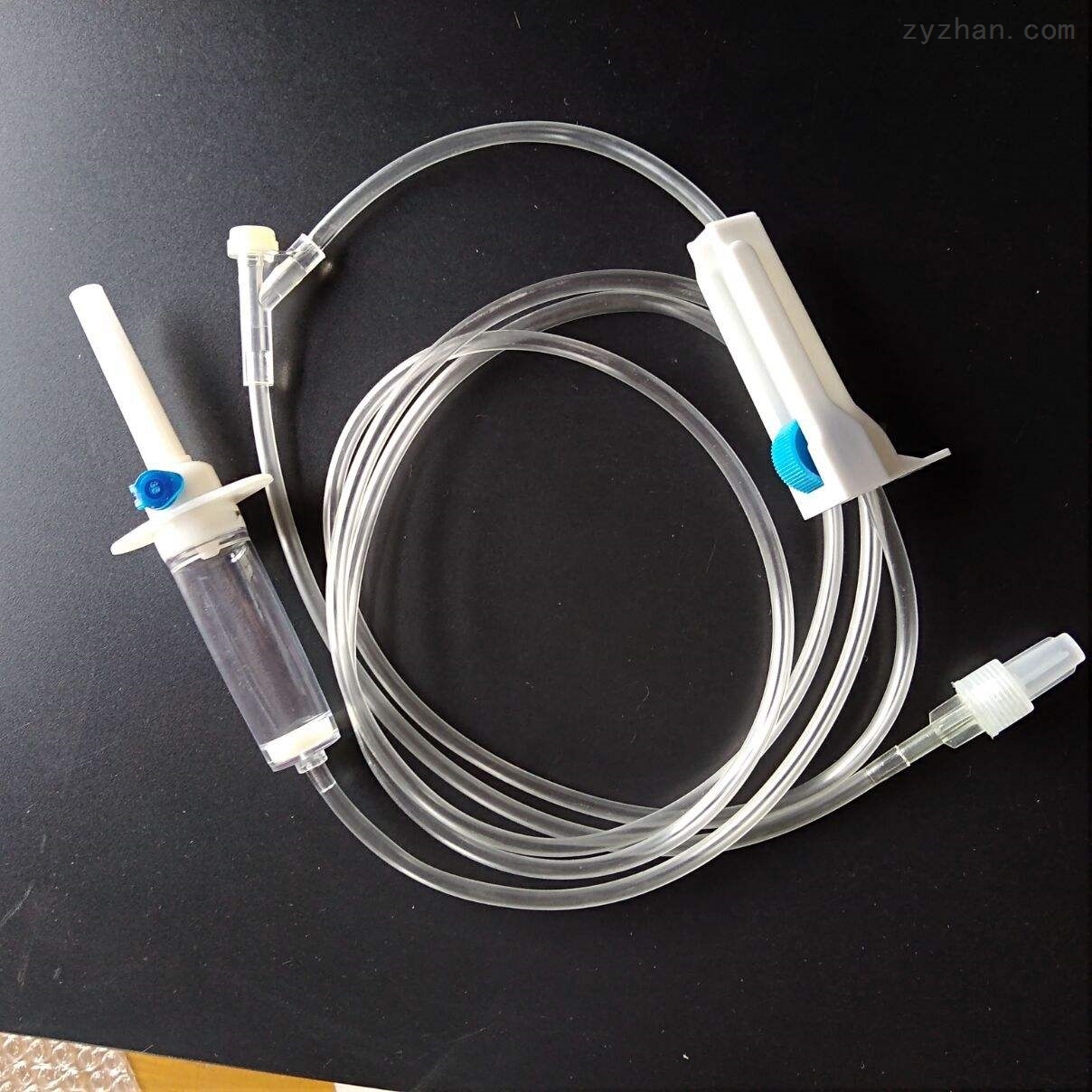 本产品由瓶塞穿刺器保护套、瓶塞穿刺器、带空气过滤器和塞子的进气口、液体通道、滴管、滴斗、药液过滤器、管路、流量调节器、注射件、输液针组成。其中输液针由针柄、软管、针座、针管和保护套组成。经环氧乙烷灭菌。