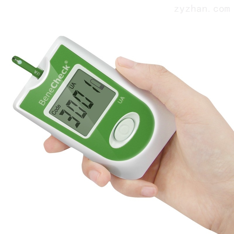 它主要用于采用酵素及电化学法定量检测人体新鲜微血管全血和/或静脉全血中尿酸的浓度。正常人体尿液中产物主要为尿素,含少量尿酸。尿酸是嘌呤代谢的终产物。为三氧基嘌呤,其醇式呈弱酸性。各种嘌呤氧化后生成的尿酸随尿排出。因溶解度较小,体内过多时可形成尿路结石或痛风等各种严重的危害,因此每日要对饮食着重的进行调理,每天要坚持多饮,可以促进尿酸排除。