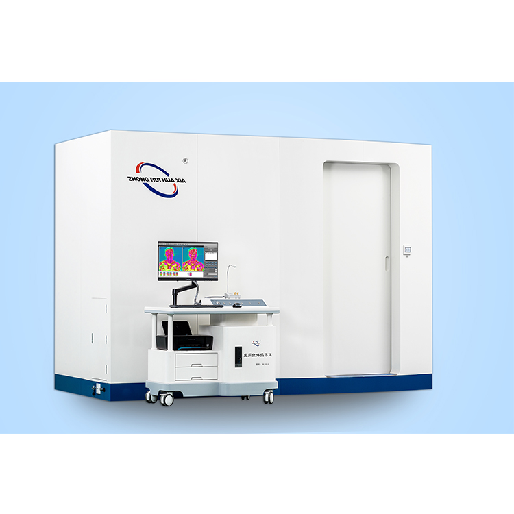 智能医用红外热断层成像系统由红外摄像头、控制系统(包括触摸屏、舱内显示器、继电器控制模组、控制板、路由器)、舱体(由底板、侧板、顶板、舱门、舱门电动模组、灯)组成。用于测量人体表面温度的分布并提供红外热像图。