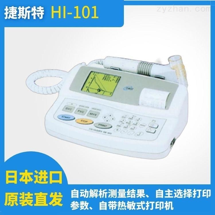肺功能仪HI-101产品由主机、内置可充电电池(PE12V0.8型)、气流传感器(PA-100-200D-W2B3型)和电源线组成。该产品可进行SVC、FVC、MVV和支气管扩张吸药试验,可用于呼吸疾病的诊断、疗法选择和疗效评估,也可用于呼吸道损伤的早期检查。
