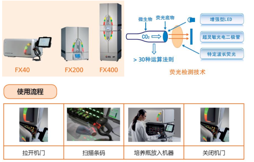 1.主要由孵育系统、测量系统、孵育抽屉、荧光检测器及软件(发布版本号:5)组成。通过检测与二氧化碳反应而变化的荧光强度来判断微生物生长的原理,与BD BACTEC?配套血培养瓶联合使用,用于临床上快速培养、检测血液和体液标本中需氧菌、厌氧菌、真菌和分枝杆菌。