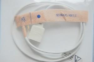 一次性血氧探头通常是用于检测血氧水平的仪器。它是将探头与适配监护仪配合使用,指套固定在病人指端,通过监护仪,可以得到SpO2、脉率、脉搏波。脉搏血氧仪由一个探头和一个微处理器单元组成,该微处理器单元可显示波形,计算出的氧饱和度百分比和平均脉搏率。当检测到血氧水平低或心跳过快或心跳过慢时,会发出警报,脉搏血氧可测量并显示动脉血中的脉搏率和血红蛋白饱和度