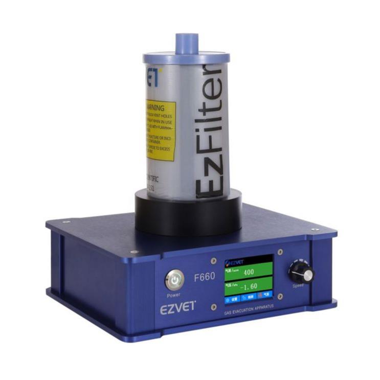 麻醉废气回收装置F660用空气泵的过滤设计,对掺杂有麻醉废气的空气进行过滤;可持续吸收七氟醚,三氟氯溴乙烷和异氟醚,不可吸收N2O。气体的吸收通过一个Fluosorber过滤装置实现。该过滤装置为耗材,初始重量为1200克,当超过1400克时,需要更换使用。