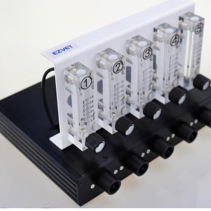 流量计满足多至5只动物或者两只动物同时麻醉手术实验,实时控制和监测每只动物的氧气或空气流量,并且各个通道可独立控制。