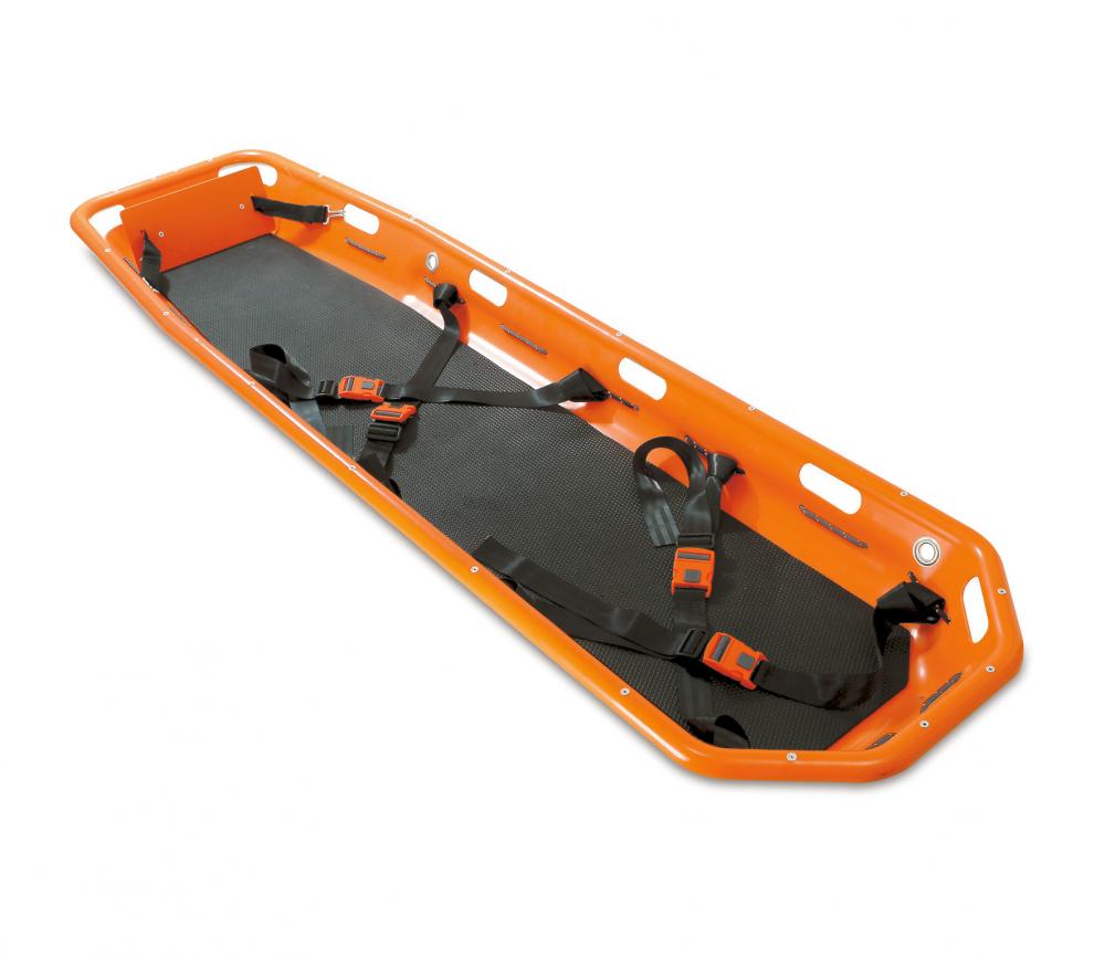 外壳采用高强度聚乙烯,框架采用高强度铝合金,结实耐用。防水、防锈、防腐蚀;担架内配有防水泡沫床垫及脚支撑;配备四根病人固定带,可快速脱钩。Art.16102采用分体式,方便存储。