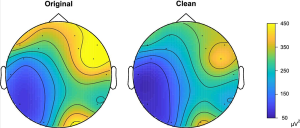 一段闭眼状态的阈值示例应用程序。左边的地形图对应于应用阈值之前的功率,右边的对应于应用阈值之后的功率▾