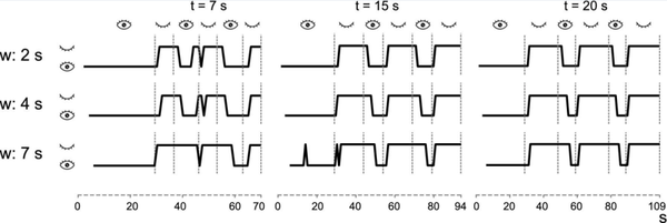 LSTM 的分类结果,时间窗为 2、4 和 7 秒,闭眼时间为 7、15 和 20 秒▾