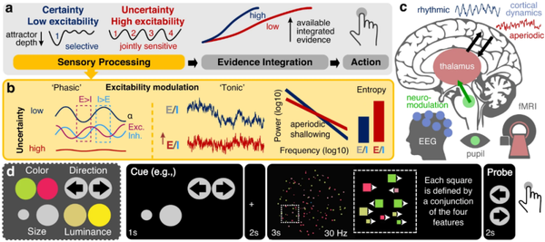Mukherjee 博士在丘脑中确定了两组表型不同的中背神经回路。一组在前额叶皮层释放兴奋性神经递质,而另一组释放抑制性神经递质。在不确定的时刻,这些神经回路一起放大或抑制前额叶皮层的活动。