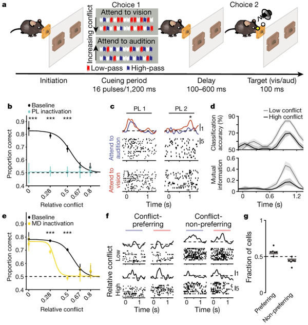 麻省理工学院麦戈文脑研究所的 Micheal Halassa 博士和他的博士后 Arghya Mukherjee 博士已经确定了关键的大脑回路,这些回路在遇到不确定时刻时有助于指导决策。内侧丘脑和前额叶皮层之间的相互作用对认知至关重要。具体来说,我们发现当任务输入稀疏时,表达多巴胺受体 (D2)的投射会放大前额叶信号,而当任务输入密集但相互矛盾时,表达投射的红藻氨酸受体 (GRIK4)会抑制前额叶噪声。