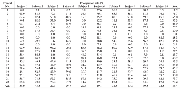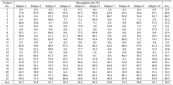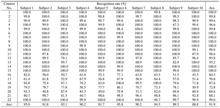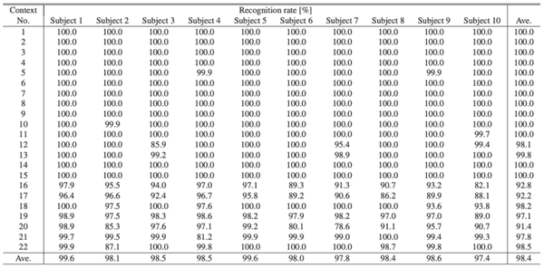 为了提高通用性而进行的评估结果表明,三点评估的平均识别准确率为98.4%,与使用全部105个点时的识别准确率几乎相同。