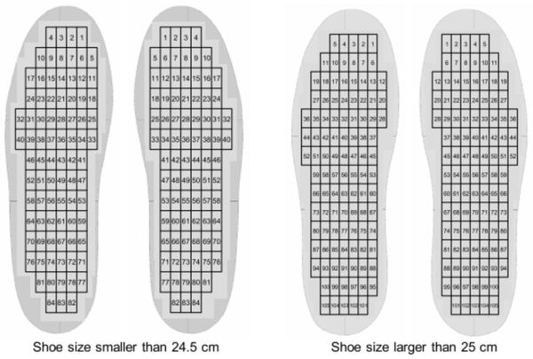 为了获得足部压力数据,使用了Medilogic足底压力分布测量系统。