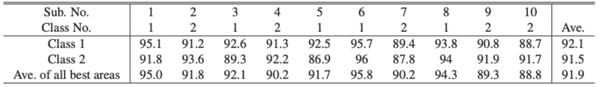 在为较佳的每个足部压力测量区域选择两个点时被试的识别准确率平均约为 94.5%。
