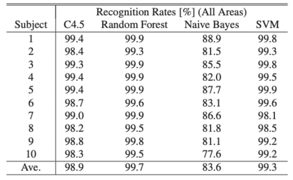 在实验中,测试22种日常姿势和新生儿的识别准确率,并通过足部压力传感器值来评估听力。此外,通过循环评估两个足部压力测量区域的组合来检查高识别精度的较佳测量点。