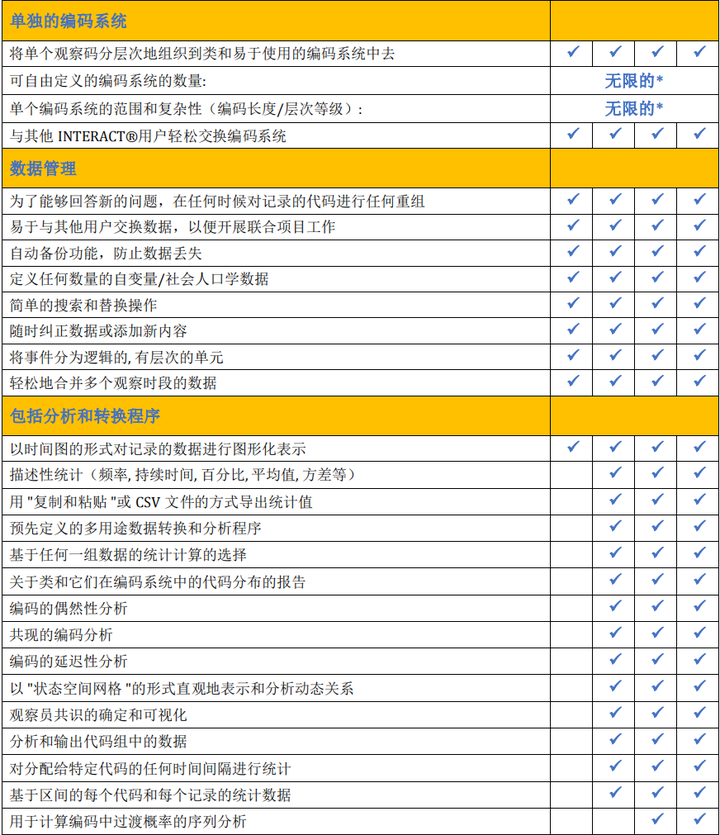 分析功能 基础统计分析、可视化时间轴、基于Cohen's Kappa的信度计算、序列分析等