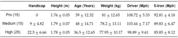 被试者:三位不同水平的55名高尔夫球手(Pro、Medium、High);