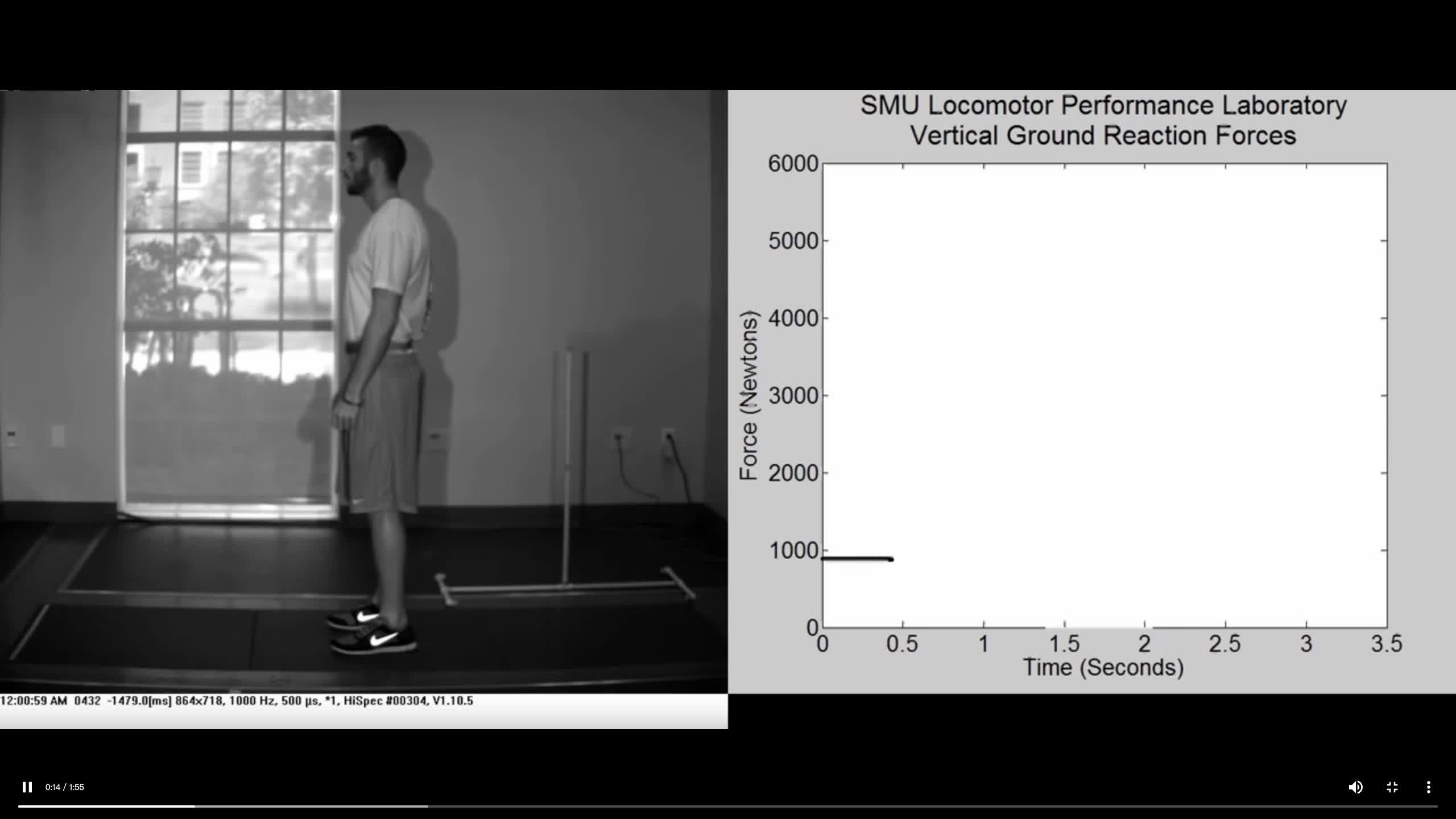 下面的视频展示了与可从测力台捕获的垂直力数据同步的慢动作垂直跳跃的精彩视觉效果。
