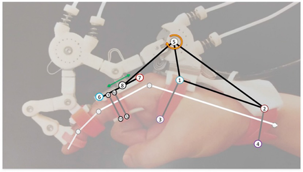 基于图3、图4PHRII单元作为我们的构建块,可以创建了更大的模拟系统——手部外部支架系统以及支撑在其上面的模拟模型(图5)。