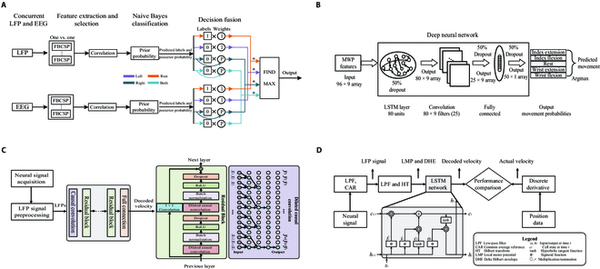 随着机器学习的发展,在 iBCIs 的神经信号解码中开发了更复杂的网络。卷积神经网络(CNN)是一种多层神经网络,广泛应用于计算机视觉领域。循环神经网络(RNN)及其变体长短期记忆(LSTM)更适合自然语言处理。
