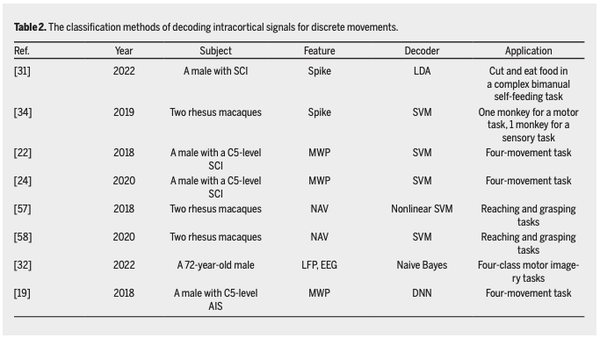 近年来,皮质内脑机接口(iBCIs)系统已经生成了许多适用于 NHP 和瘫痪人类的解码算法。与运动相关的 iBCI 任务可分为 2 类:离散运动和连续运动。