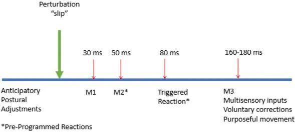 - 反应潜伏期,即扰动与身体保持平衡反应之间的时间。