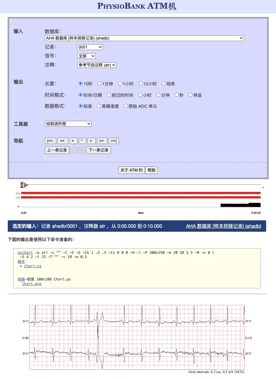 另外,它还支持数据库可视化(http://archive.physionet.org/c),可以直接从各个数据库提取数据,以折线的方式显示数据的真实变动情况。