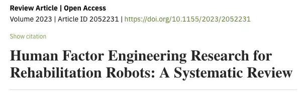 人因工程学在康复机器人上的应用是基于“以人为中心”的设计理念,力求为患者提供安全、高效的人机交互训练,而不是依赖于康复治疗师。该研究旨在对康复机器人学和人体工程学交叉领域的研究进行系统回顾,以了解康复机器人关键人为因素、问题和相应解决方案的进展和***的研究。