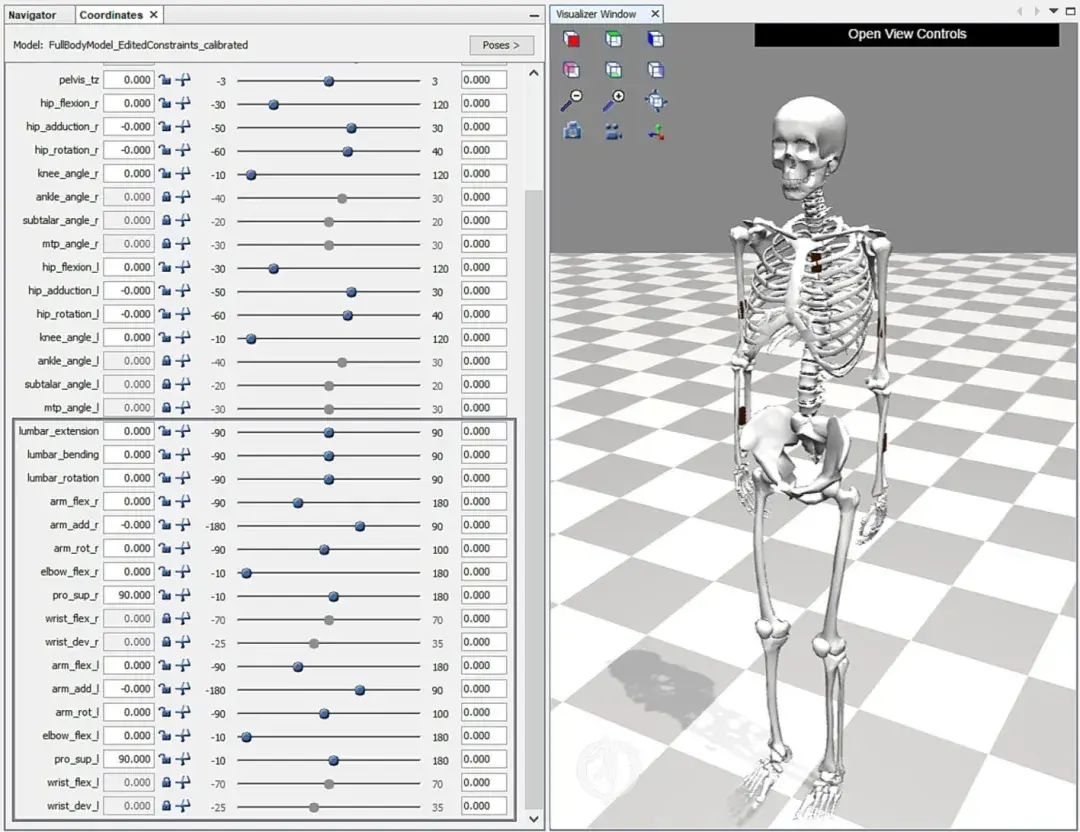 图4:OpenSim 模型调整为 N 姿势并修改了约束