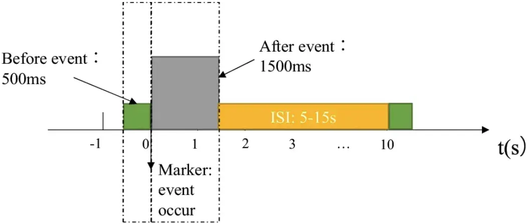 触发事件发生时标记ERP,方便数据分析和研究(图3)。将不同的驾驶行为分为4种不同的案例,每位受试者完成8组实验,每组时间间隔为5-15秒,总时长约90分钟,期间安排休息以避免疲劳。被试的所有操作流程及操作过程中的生理数据均被同步记录。