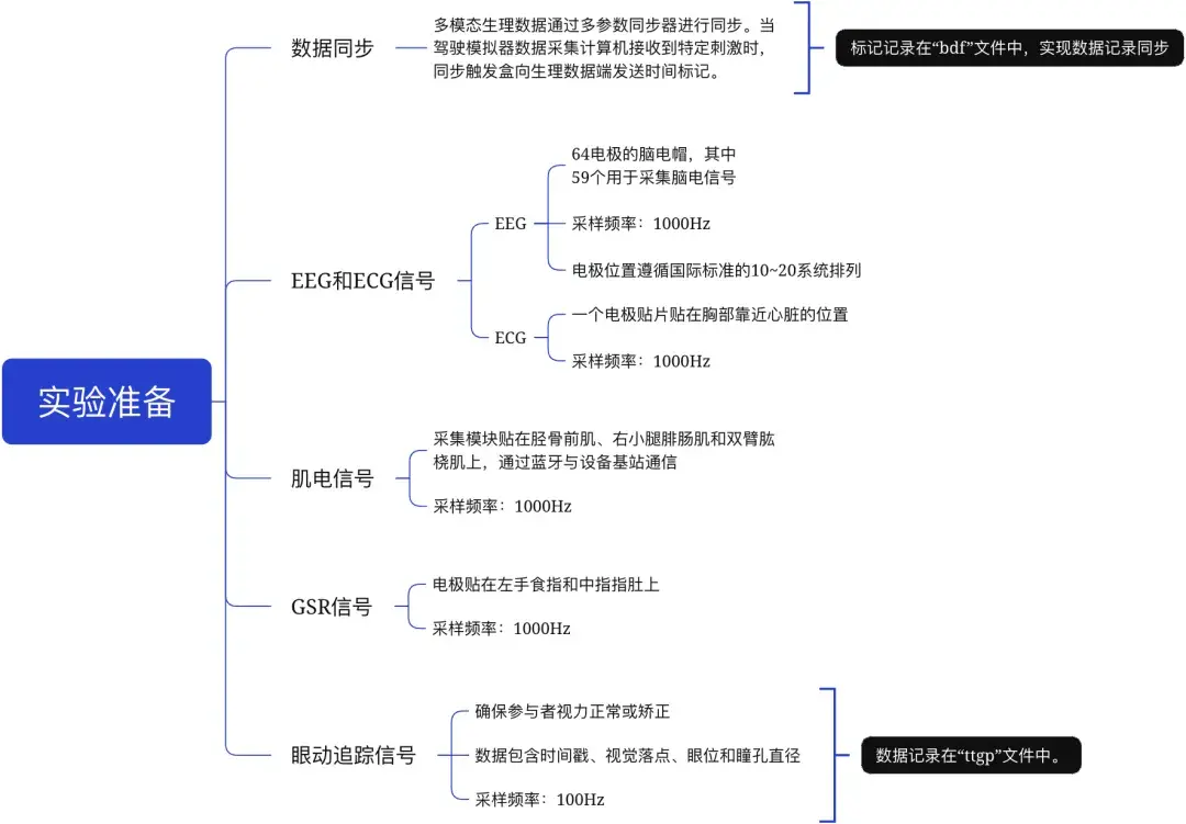 因此,建立驾驶中的多模态生理信号人体行为数据集对于研究影响驾驶行为决策的驾驶员认知特征至关重要。