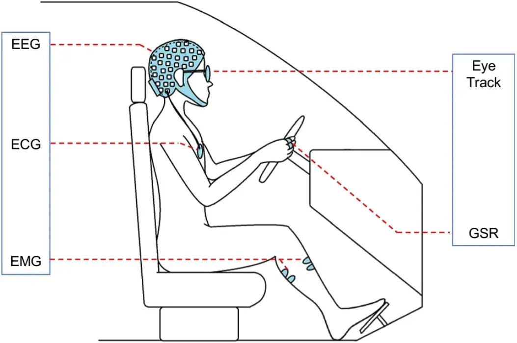 心理生理学研究为了观察人的行为,可以通过人体不同部位的生理信号分析驾驶员的驾驶状态或驾驶意图。(低功耗、高精度可穿戴设备技术的发展推动了认知研究,导致越来越多的研究调查驾驶过程中人类驾驶行为的认知决策过程。)