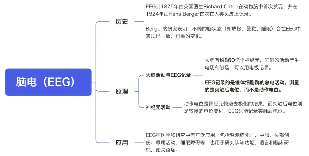 EEG提供了关于大脑整体活动的时间分辨率高的数据,它可以用于检测大脑在特定时间段内的整体电活动模式。